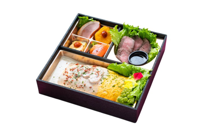 特製デミグラスソースのオムライスとホタテのクリーム煮・当店自慢のローストビーフ等々、冷めても美味しいにこだわり抜いたワンランク上の御弁当をお楽しみください!