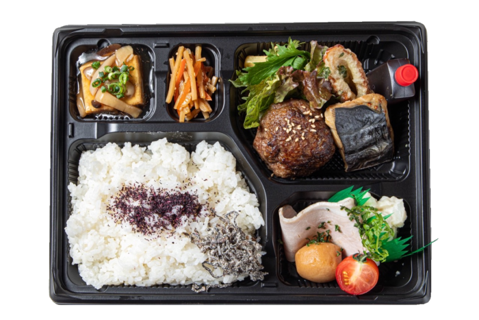【内容】 国産牛ハンバーグ・焼き魚・季節のお惣菜 等