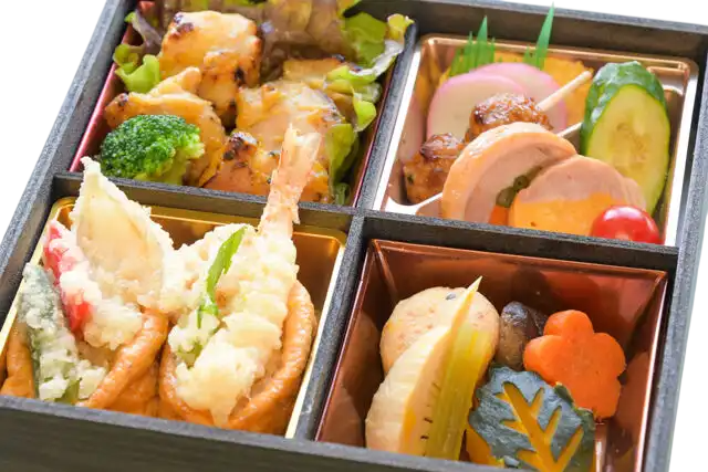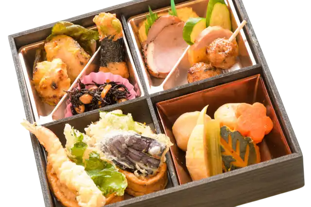 京都で取れる旬の食材はもちろんのこと、全国から新鮮で美味しい食材を随時取り寄せて、四季折々のこだわり弁当を作っております。お祝いの場やビジネスの場など、さまざまなシーンに対応するお弁当だからこそ、生産ラインではなく、職人が真心込めて手作りしております。職人の味を是非ご堪能ください。