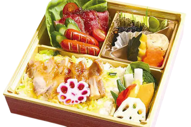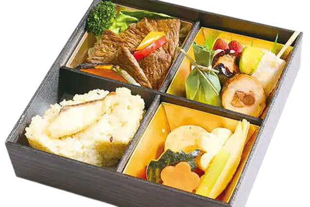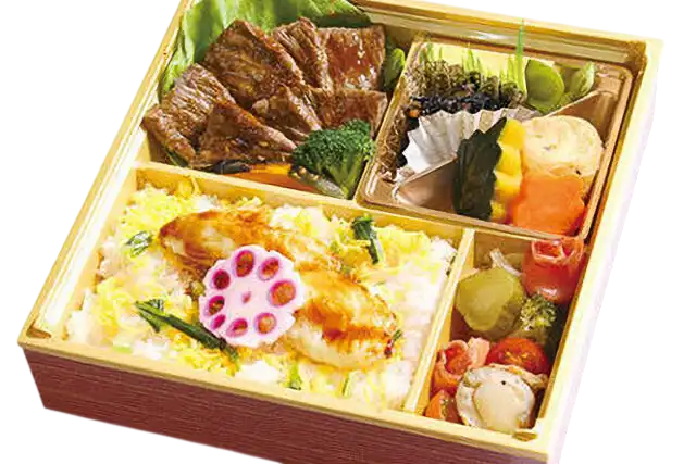【内容】 鯛めし・ステーキ・炊き合わせ・焼魚・だし巻きたまご・和菓子・季節のフルーツ 等
