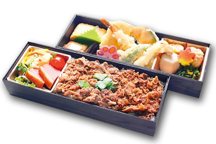 国産牛の牛しぐれ煮をご飯に敷き詰めた、ボリュームたっぷりのお弁当です。