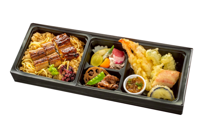とろけるA5大和牛すき焼きと、旬を彩る天ぷらの饗宴。雅なひとときを詰め込んだ弁当に。またご飯は贅沢に炭火香る「鰻めし」にて提供させていただきます。