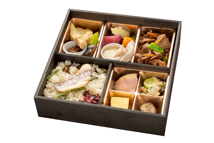 【内容】 鯛めし・季節の惣菜4種盛合せ・大和牛の時雨煮・地鶏の西京焼き・大和ポークと菜園野菜の蒸しサラダ 等