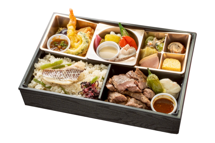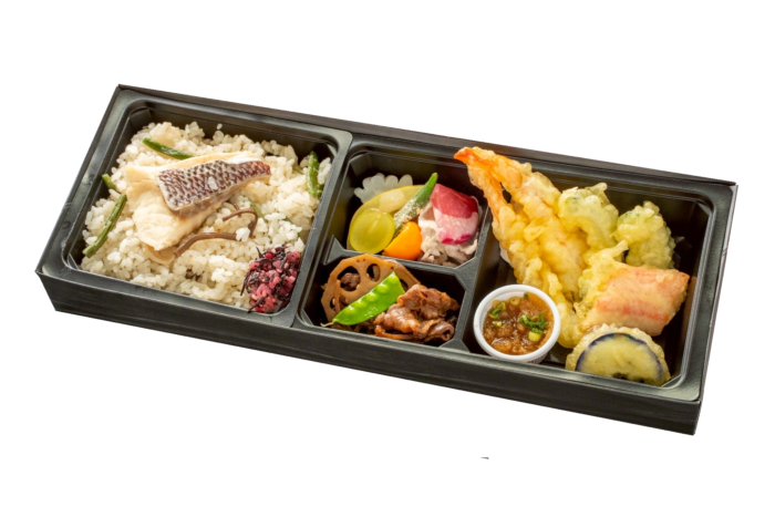 とろけるA5大和牛すき焼きと、旬を彩る天ぷらの饗宴。雅なひとときを詰め込んだ弁当に。またご飯は特別に出汁自慢の優しい味わい「鯛めし」にて提供させていただきます。