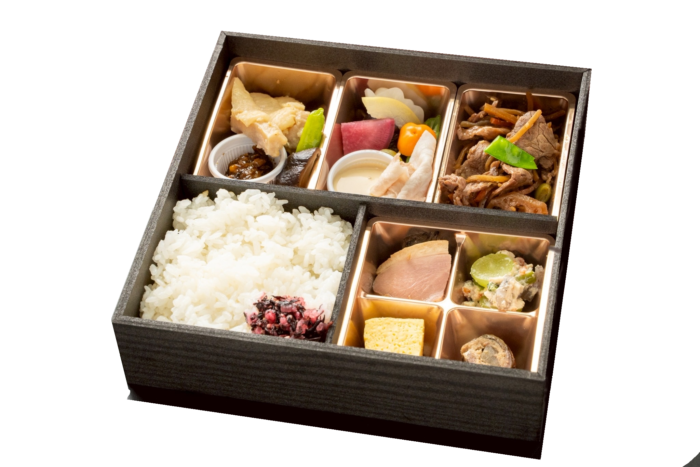 【内容】 白飯・香物・季節の惣菜4種盛合せ・大和牛の時雨煮・地鶏の西京焼き・大和ポークと菜園野菜の蒸しサラダ 等