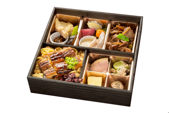地鶏の旨み、牛のコク、豚の甘み。肉の三重奏、奈良の美味を奏でる職人仕立ての至福弁当です。またご飯は贅沢に炭火香る「鰻めし」にて提供させていただきます。
