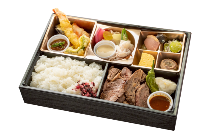 大和牛ステーキなどをメインに、大和ポークや大和肉鶏、料理人自ら地元農家と一緒に育てた自家菜園野菜を使用したお弁当をお届けいたします。