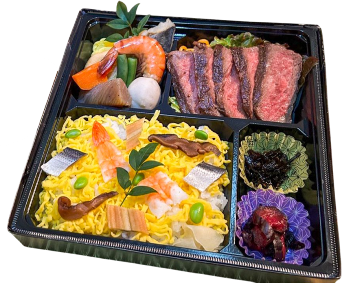 【内容】 特選牛ステーキ・季節の海鮮ちらし・季節の焼き魚・季節の炊き合わせ 等