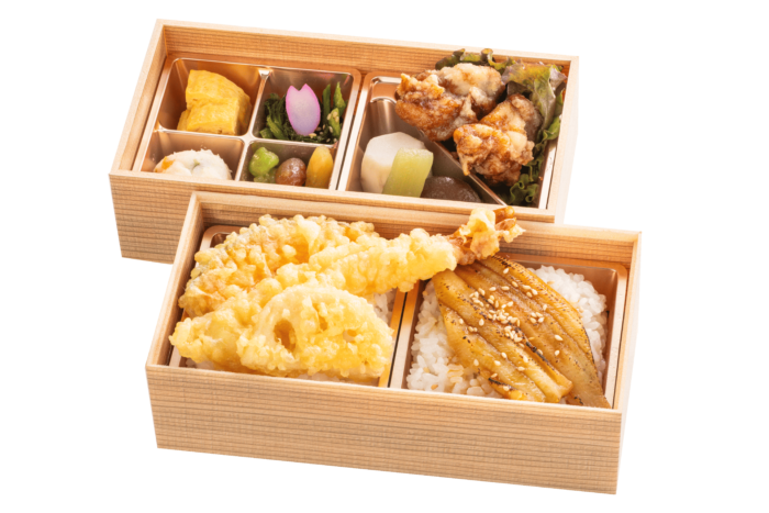 ヘルシーなおかずに天重と穴子ご飯を組み合わせたお弁当です。
