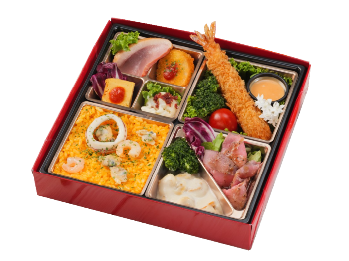 パエリア・エビフライ・ホタテのクリーム煮・当店自慢のローストビーフ等々、冷めても美味しいにこだわり抜いたワンランク上の御弁当をお楽しみください!