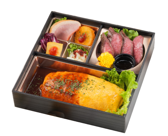 特製デミグラスソースのオムライスと国産黒毛牛のステーキ~特選トリュフソース~等々、冷めても美味しいにこだわり抜いたワンランク上の御弁当をお楽しみください!
