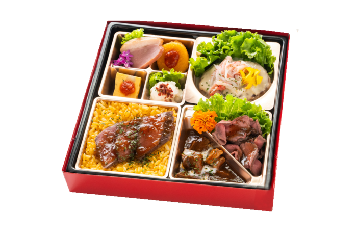 国産黒毛牛のステーキ重・特製トリュフソースのハンバーグ・ホタテのクリーム煮・当店自慢のローストビーフ等々、冷めても美味しいにこだわり抜いたワンランク上の御弁当をお楽しみください!