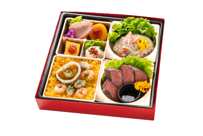 パエリア・国産牛ステーキ・クリームフォンデュチキン等々、冷めても美味しいにこだわり抜いたワンランク上の御弁当をお楽しみください!