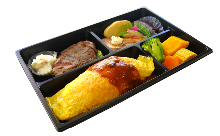 【内容】 ビーフステーキ・季節の魚のグリル・オムライス・ポテトサラダ・とうもろこし・季節の野菜・自家製チョコレートケーキ ※仕入れ状況により、副菜の内容が変わる場合がございます。