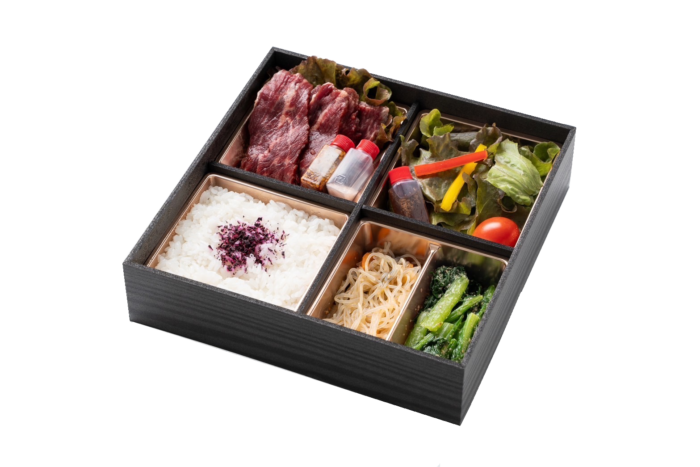 特選されたハラミを岩塩・自家製タレの2種類の食べ方で食べていただくお肉になります。 当店No.1のお弁当です!