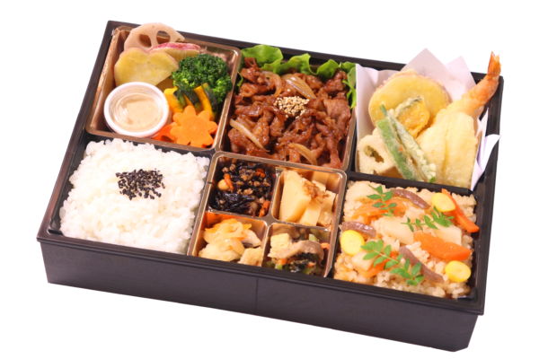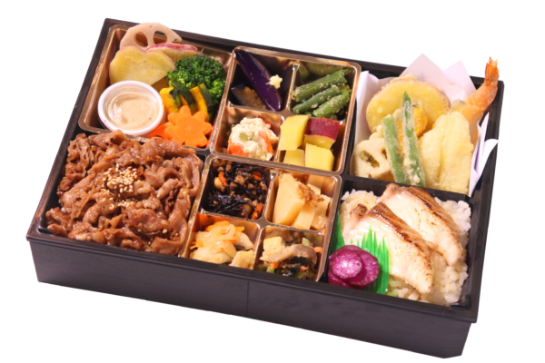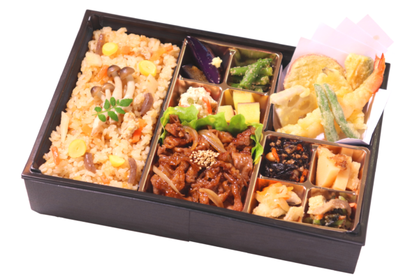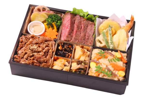 特製の割り下で作ったすき焼きや、季節の食材の天ぷらを詰め込んだお弁当です。