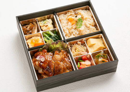 【内容】 鶏の照り焼き・ポテトサラダ・出汁巻き・季節のナムル・季節のお惣菜5種・炊き込みご飯[約160g] ※仕入れ状況により、副菜の内容が変わる場合がございます。
