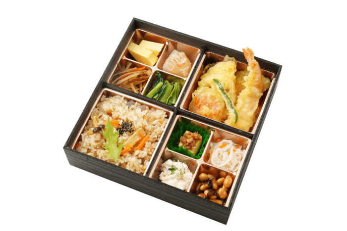 カラっと揚げた天ぷら、和匠心の炊き込みご飯をはじめたっぷりのお惣菜が楽しめるお弁当です。どれから食べるか迷う程の豪華さとなっています。