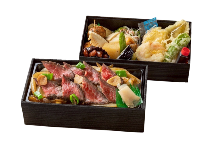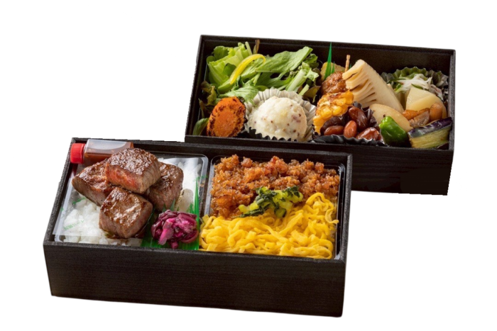 【内容】 国産牛ステーキ・牛時雨煮・お野菜の焚き物・季節のお惣菜・サラダ 等