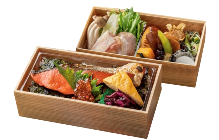【内容】 鶏すき・紅鮭海苔・季節のお惣菜 等